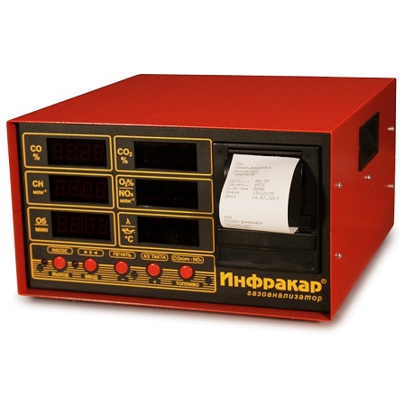 Автомобильный 5-ти компонентный газоанализатор «Инфракар 5М-2.01 предназначен для измерения объемной доли оксида углерода (СО), углеводородов (CН) (в пересчете на гексан), диоксида углерода (СО2), кислорода (О2), окислы азота(NOx) в отработавших газах автомобилей с бензиновыми двигателями. Лямбда + Тахометр + RS-232 + Автослив конденсата + Автоподстройка нуля + Работа с ЛТК и мотортестерами. Внесен в Госреестре средств измерений РФ, Республики Беларусь и Казахстан.