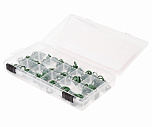 Набор золотников. Набор ниппелей для сервисных портов автомобильных кондиционеров на фреоне R134a. В комплект входит сервисный ключ, набор самых распространенных ниппелей. Поставляется в пластиковом футляре.