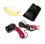 Набор для обнаружения утечек в системе кондиционирования. Фонарь имеет поворотную головку для подбора наилучшего угла освещения. Фонарь с галогенной лампой (35 Вт) и ультрафиолетовым светофильтром позволяют быстро обнаружить утечку хладагента. Имеет 12В батарейку.
