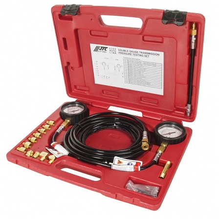 Стенд для проверки дизельных форсунок с калибровочным ручным насосом JTC-4818. В комплекте манометр, бачок для жидкости и соединительные трубки с адаптерами.