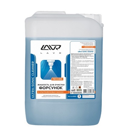 Жидкость для очистки форсунок в ультразвуковых ваннах LAVR Ultra-Sonic Cleaner. Подходит для очистки фильтр сеток топливного насоса, элементов ТНВД и др. Поставляется в 5л. канистрах.