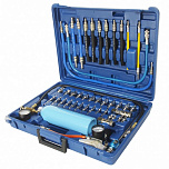 Стенд для промывки форсунок. Комплект предназначен для очистки топливной системы инжекторов без демонтажа форсунок. Данный набор также очищает и детали цилиндро-поршневой группы, из-за того, что принцип работы данного устройства основан на подаче чистящего вещества в цилиндры двигателя вместо обычного топлива. Для очистки используют специальную промывочную жидкость типа Лавр или Wynns.
