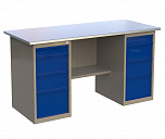 Двухтумбовый. Допустимая нагрузка на столешницу 1000 кг. Опорные элементы выполнены сварными из холоднокатаной стали. Для выполнения сборочных, ремонтных, слесарных, монтажных и других видов работ на производстве, в сервисных центрах, мастерских, гаражах, а также для обучения технологии в учебных заведениях. Комплектуется полкой-стенкой, расположенной под столешницей для удобного размещения габаритного инструмента и оснастки. Размеры верстака: 855x1596x696 мм. Вес: 121 кг. Поставляется в 4 комплектациях на выбор.