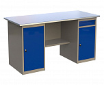 Верстак двухтумбовый 1600 ML0/ML4 поставляется в разобранном виде (4 элемента). Нагрузка на столешницу до 600 кг. Стандартный цвет: корпус - серый глянец RAL 7030, ящики и двери тумб - синий RAL 5017. Размеры: 855x1600x700 мм. Масса: 97 кг.