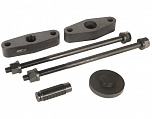 Прост в применении и эффективен при проведении ремонтных работ оси. Разработан для демонтажа шкворней и тормозных валов грузовых автомобилей. Усилие 20 тонн гидравлического цилиндра позволяет демонтировать шкворни диаметром до 1 1/4".