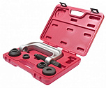 Для снятия/установки запрессованных элементов: шаровых опор, карданного шарнира с крестовиной, анкерных пальцев барабанных тормозов и других аналогичных работ. Размер струбцины: 165 мм. Размер насадок: 69 мм, 56 мм, 45 мм.