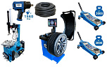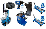 Комплект: шиномонтажный станок TS-21 для дисков: внешний 11÷20” + пистолет с манометром для подкачки шин + монтажка + пластиковые накладки на зажимные кулачки + регулятор давления с влагоотделителем и манометром. + TS-500 балансировочный станок с автозапуском, для колес легковых автомобилей и легких грузовиков, диаметр диска с резиной до 760 мм. размеры диска: ширина 3"–9” (76-228 мм), диаметр диска 10"–21” (254-533 мм). + кожух защитный + клещи + кронциркуль + быстрозажимная гайка + набор конусов + подкатной домкрат г/п 3,0т. 130-465мм. + ударный пневмогайковерт 1/2" крутящий момент 745Нм + шланг кислородный 9мм 20Атм. 10м