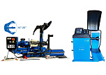Комплект полуавтоматический грузовой шиномонтажный стенд до 26" позволяет монтировать/демонтировать диски сталь, AL, с кольцами и без, 14-26”, Колесо макс. 1600*780мм, вес до 500кг. Моторы 1800 + 1500Вт. Гидравлика – немецкая «BUCHER HIDRAULICS». + ЛС-32 MAXY P Грузовой балансировочный станок. Для колес от 10 до 30 дюймов. Универсальный. Максимальный вес колеса до 200 кг. Два режима работы. Настройка «нуля». Программа автоматической калибровки. Программа самодиагностики (режим ТЕСТ). В стандартную комплектацию входит подкатная тележка с пневматическим подъемником. Внесен в реестр средств измерений России Казахстана и Респ. Беларусь
