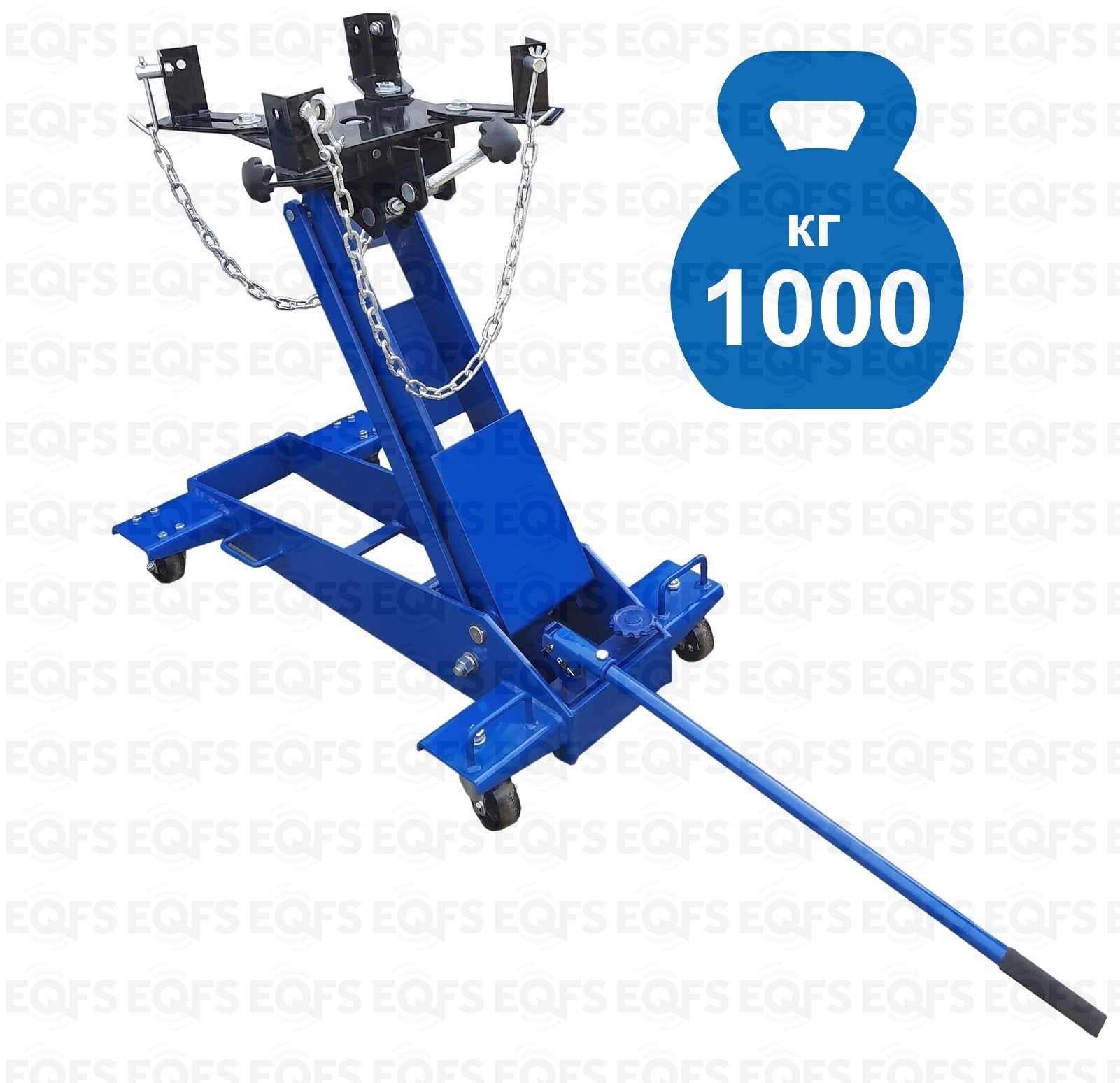 Для снятия/установки ТЯЖЕЛЫХ АГРЕГАТОВ (КПП, мостов и т.п.). Маневренный – два колеса поворотные. Оборудован страховочной цепью, для фиксации агрегата. Приемная площадка регулируется с фиксацией в трех плоскостях: продольно, по наклону, по оси вращения. Подъем 230-760 мм. г/п 1 000 кг.
