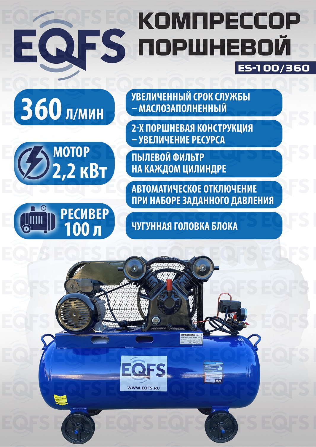 Технические особенности компрессор поршневой ES-100/360: