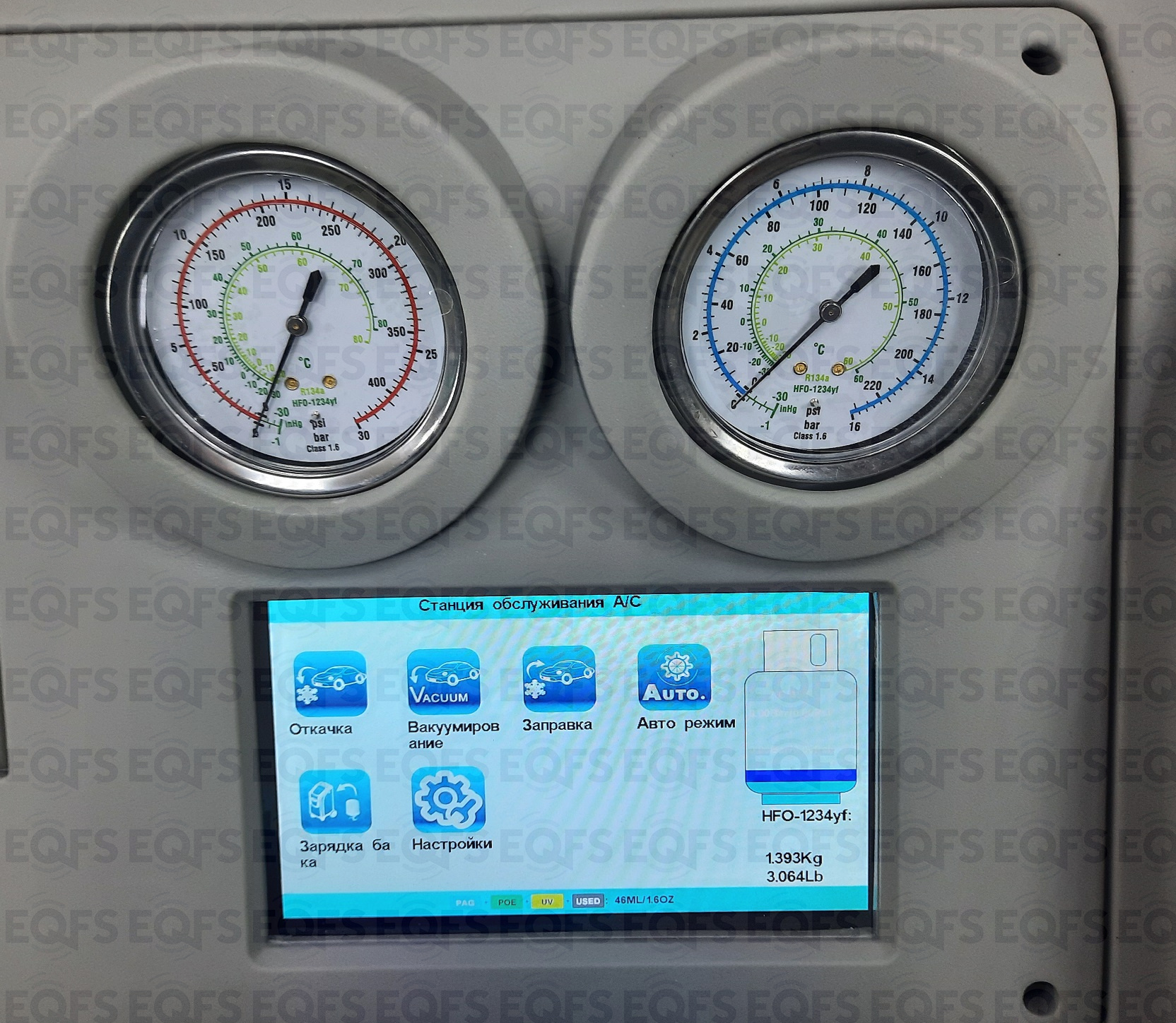 В меню установки есть специальный раздел с простым и понятным интерфейсом для заправки установки фреоном.