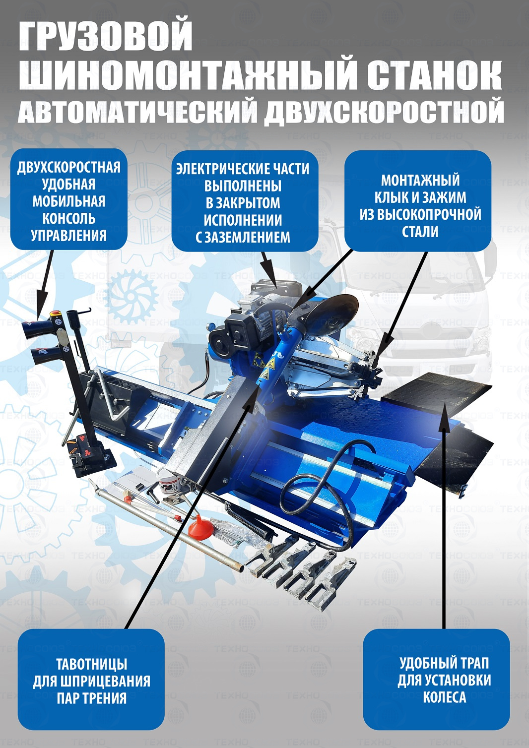 Двухскоростной автоматический грузовой шиномонтажный станок TS-56D для шиномонтажных работ с колёсами автобусов, тракторов, строительной техники с диском 14-56”. Диски ALU, сталь, с кольцом и без 14-56”. Размер покрышки 2500х1200мм, масса до 2000кг. Двухскоростной. Моторы 4 + 4 кВт. Гидравлический насос – Германия «BUCHER HIDRAULICS». Гарантия до 18 мес.
