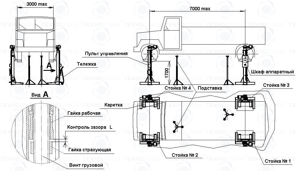 Устанавливается на полу с допускаемым удельным давлением более 10 кг/см2. Комплектуется страховочными стойками.