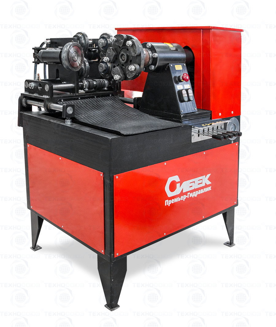 Традиционное для линейки моделей «Премьер» использование цилиндрических направляющих для перемещения кареток с роликами придаёт станку необходимую жёсткость для работы с большими дисками. Серийный «Премьер-Гидравлик» красного цвета с кулачковой планшайбой. Если необходим другой цвет или нужна планшайба с радиальными пазами, это необходимо оговаривать при заказе. На текущий момент это самый мощный станок для прокатки стальных дисков.