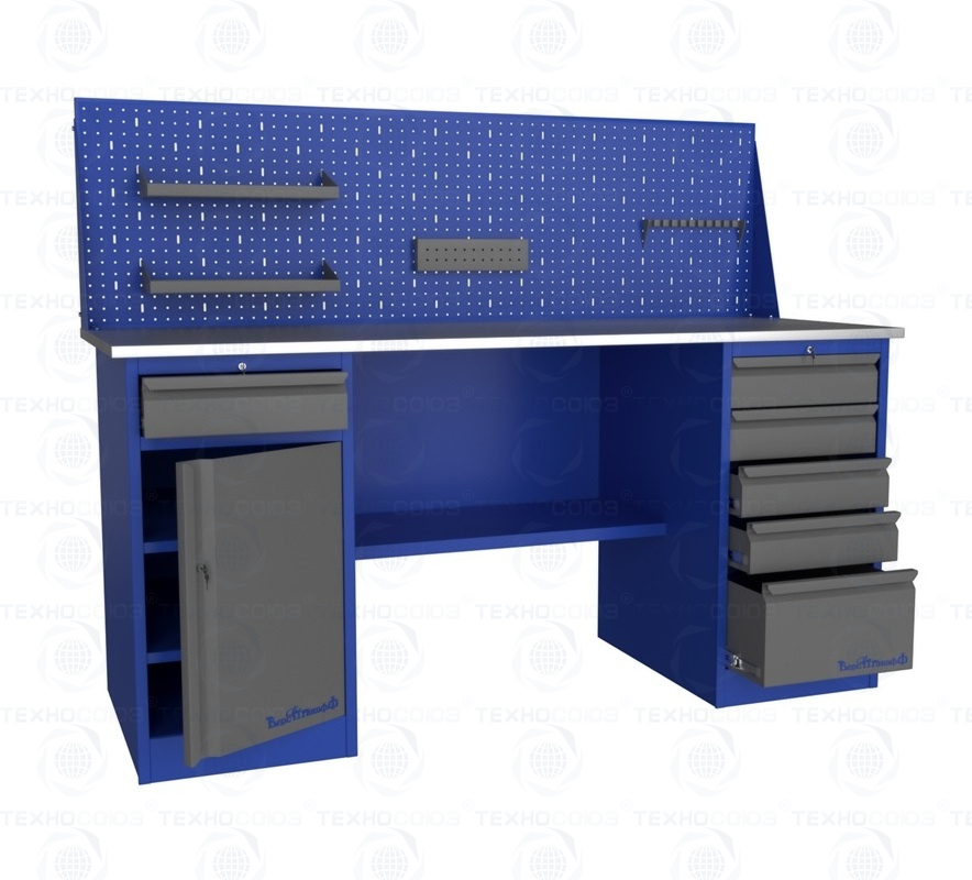 Для организации рабочих мест в автосервисах, мастерских, цехах и т.д., компания разработала линейку верстаков и рабочих столов. Основания этих изделий изготовлены из листового металла и покрыты порошковой краской. Столешницы сделаны из фанеры толщиной 24 мм. и обшиты оцинкованным металлом толщиной 1 мм.