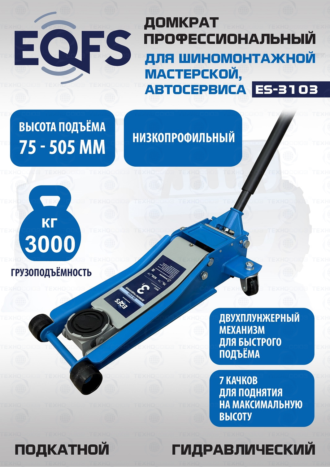+ низкопрофильный подкатной домкрат г/п 3т. Высота подъема мин / макс - 75-505 мм.
