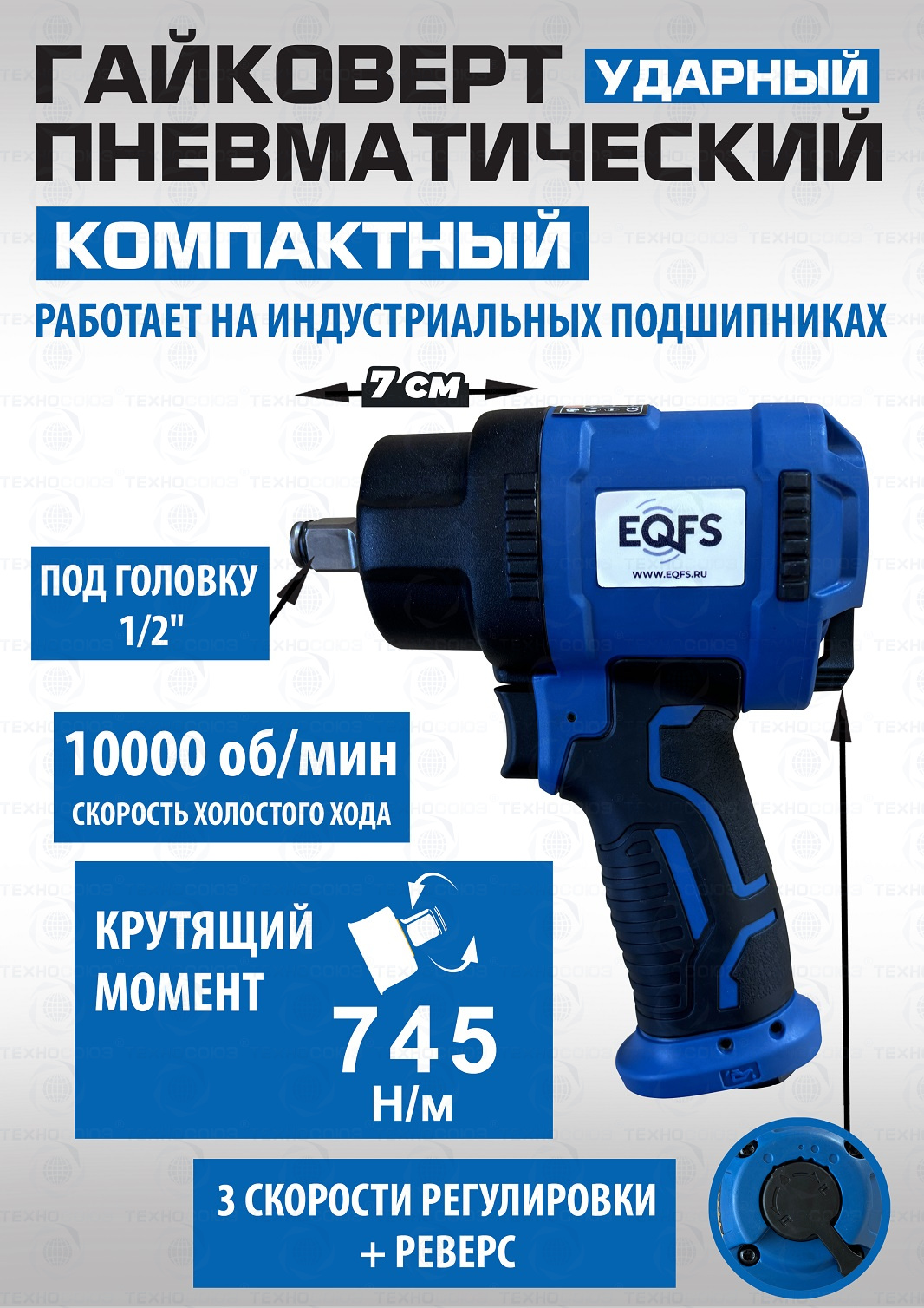 + ударный пневмогайковерт, 1/2", крутящий момент 745Нм